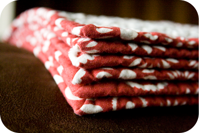 i wasn't a huge fan of the back until i washed em. i was wishing i used a red fabric, but now with the binding on, and red thread, i'm really liking them.
